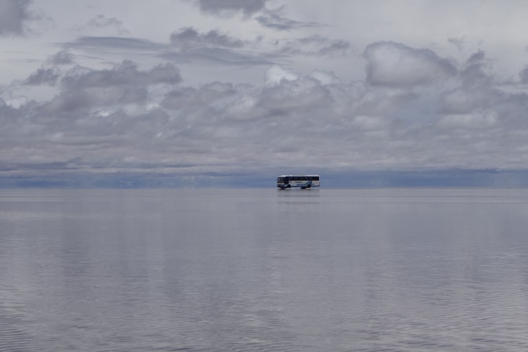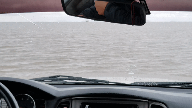 After the first 500 m, where the car got really deep into the saltwater, it gets very shallow.