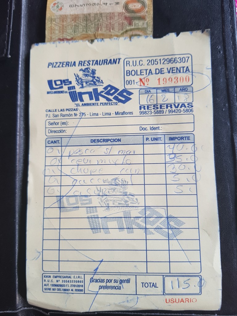 We go, get some money from the ATM. In Peru you are charged between 4 to 5 EUR per ATM transaction. An ATM gives you usually 400 Peruvian Sol (about 103 EUR), some may even give you 500 SOL. The charge is 4 to 5 %!!!