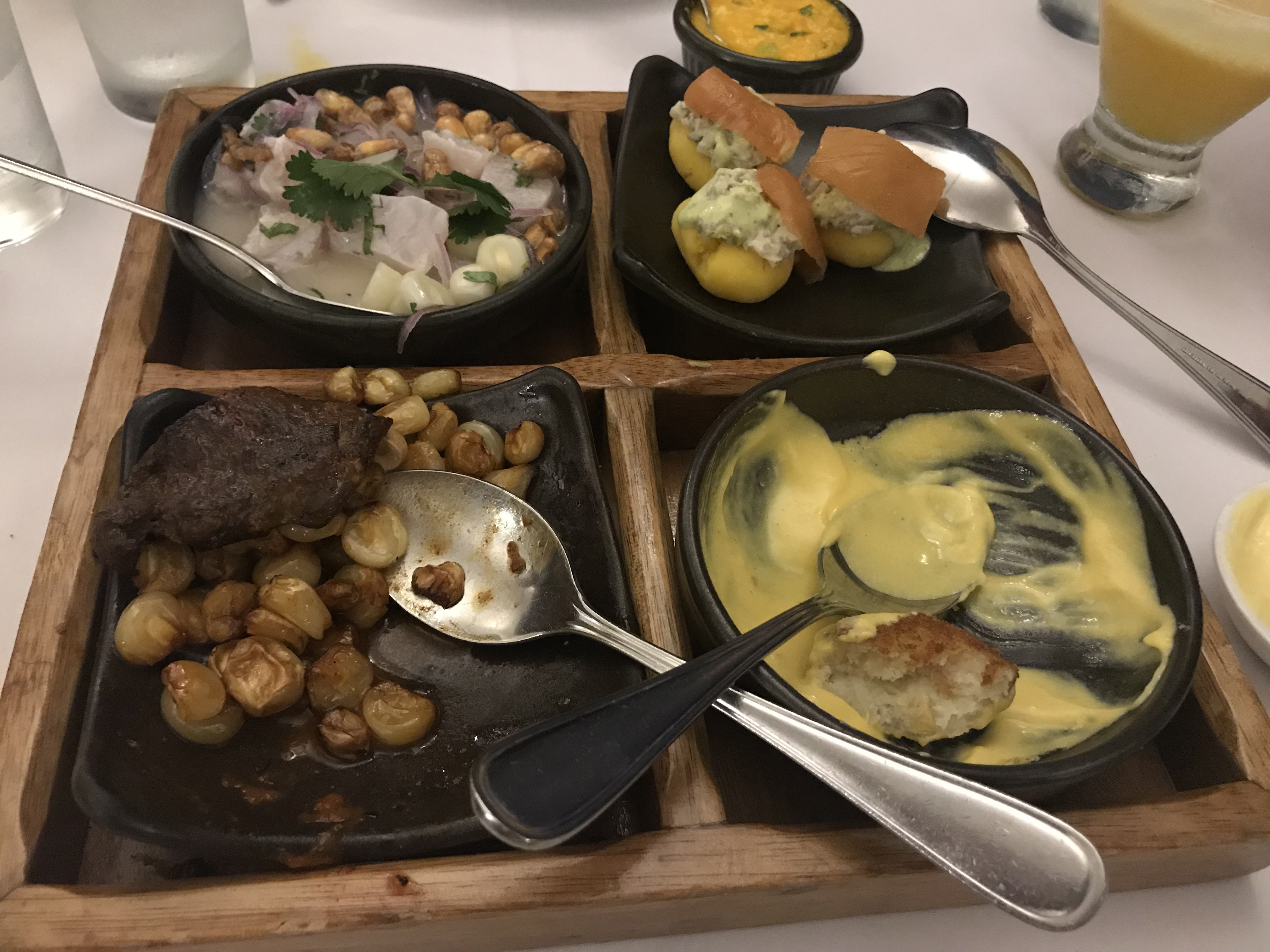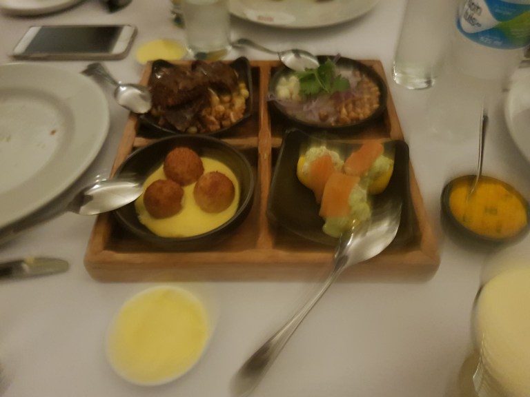 Then we went to Huaca Pucllana Restaurant with a View on the pre-inca ruins with a taste of beefheart, japan-peru ceviche, chinese-peruvian chicken and stuffed potatoes.