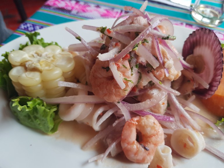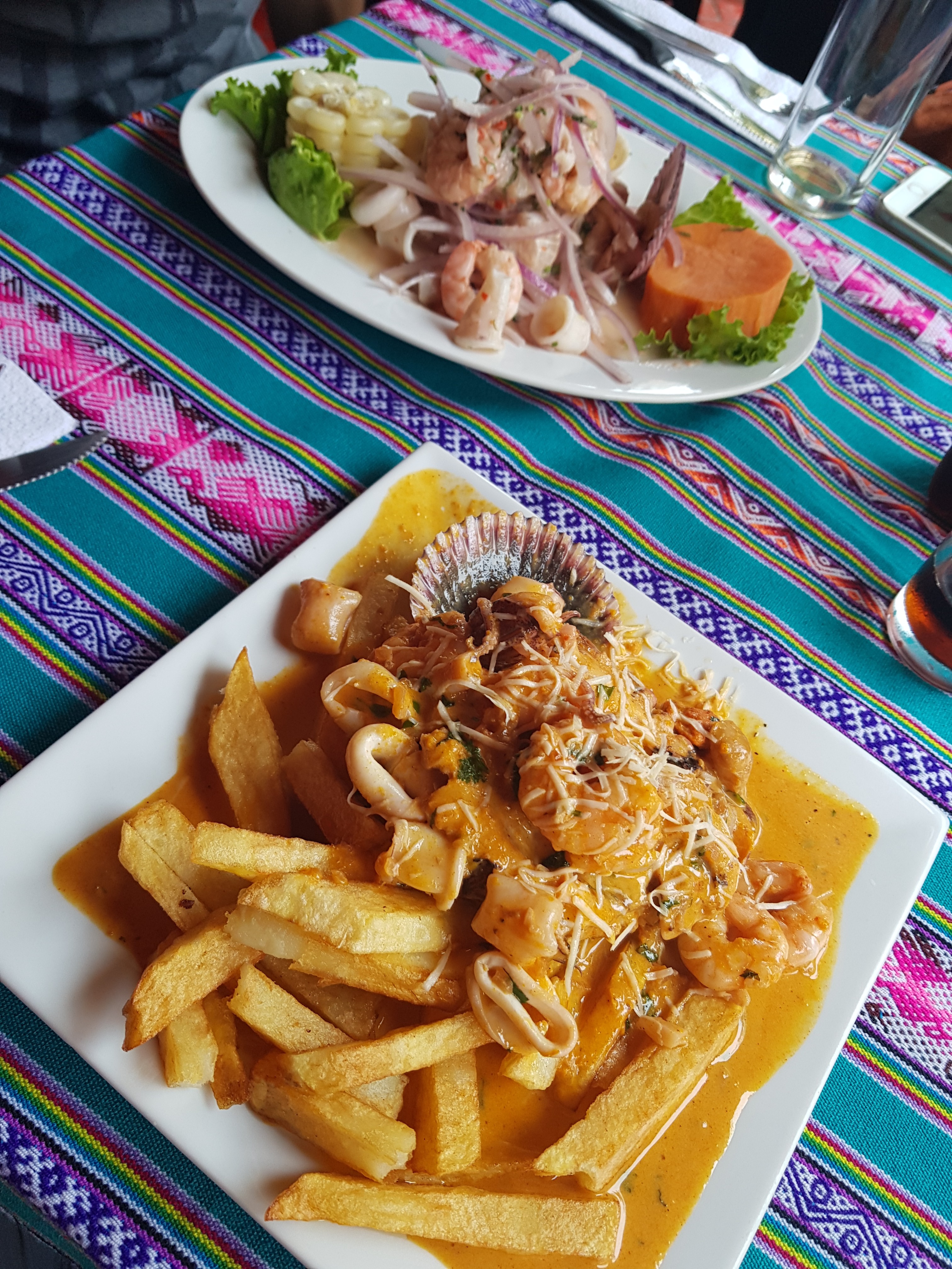 Then we look for a laundry (8 SOL per kilo, that is a fair price, 24 hours) and go for peruvian food around the hotel. We just pop into Los Inkas, more or less touristic, but good seafood (“La macho”).
