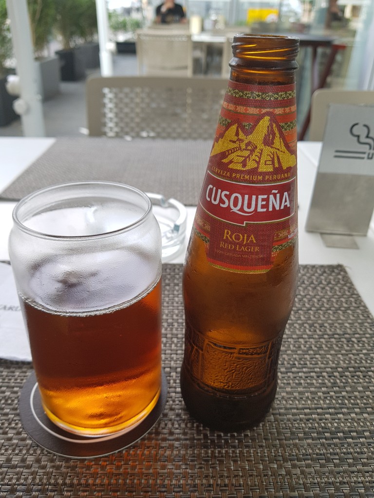 Christina books a free walking tour with Inkan Milky Way Tours tomorrow in downtown lima. Time for a beer in the hotels street garden.
