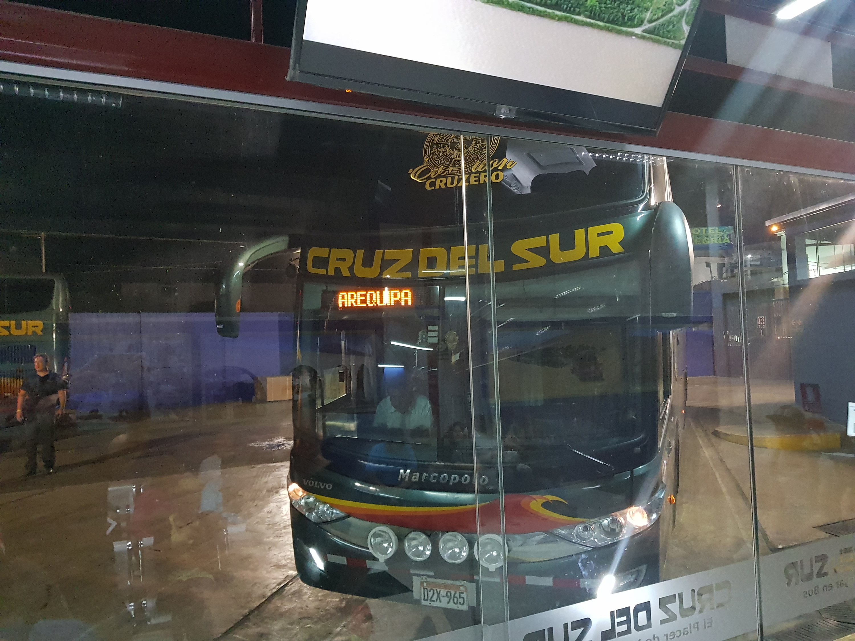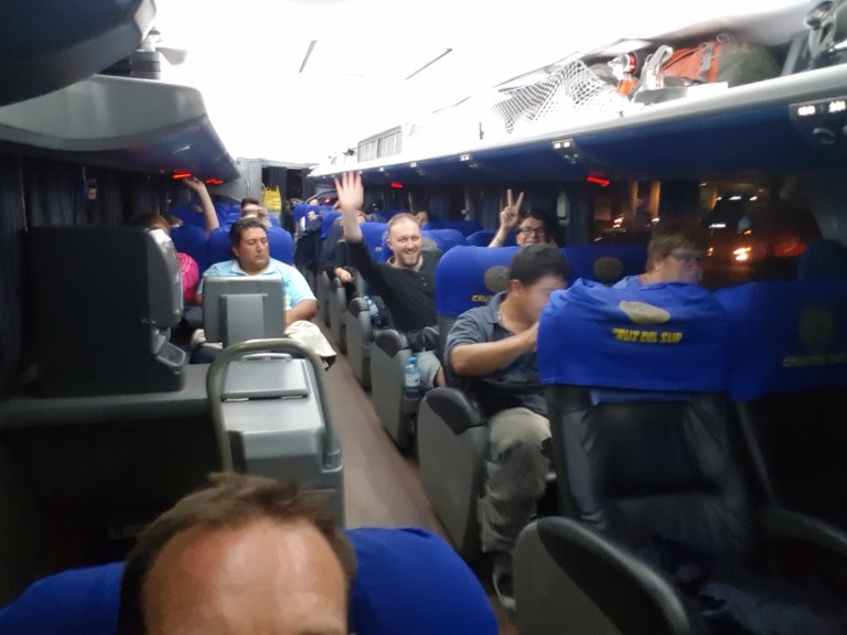 The bus is fully booked but quite comfortable. At 22:00 we leave Nazca. At least we can sleep some hours.