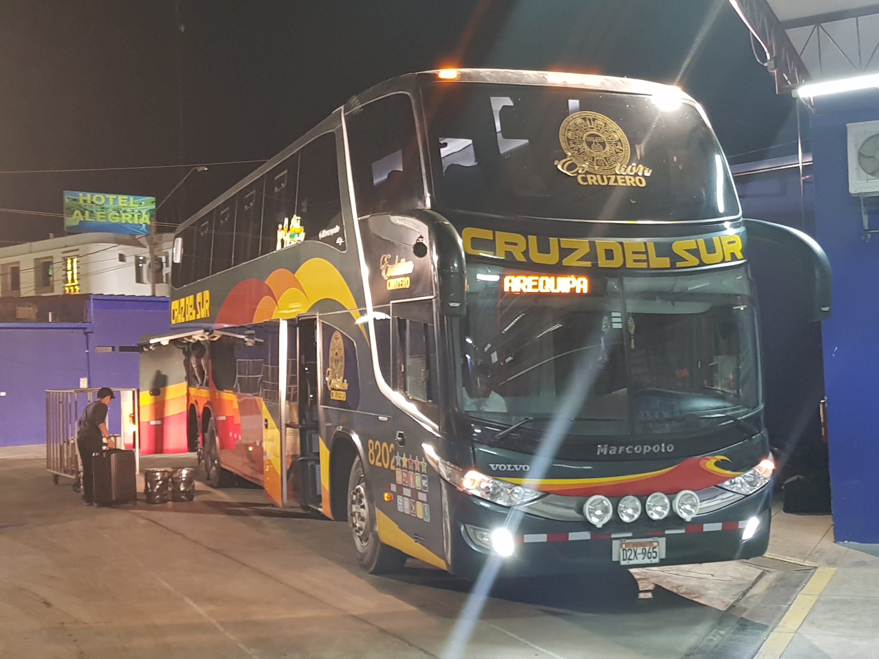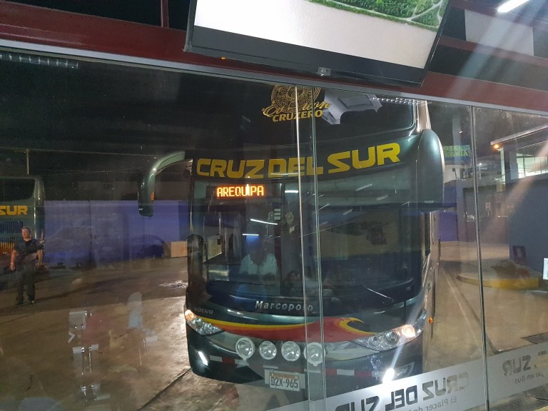 Then we meet the group again and go for our Cruz del Sur night bus from Nazca to Arequipa in a Cruzero Evolution bus (approx 9:30 hours for 102 soles). We finally adopt young Gianni temporarily for the tour.