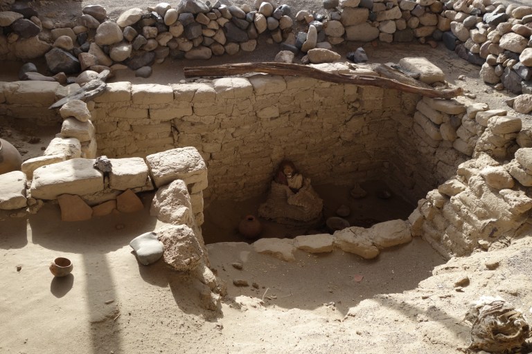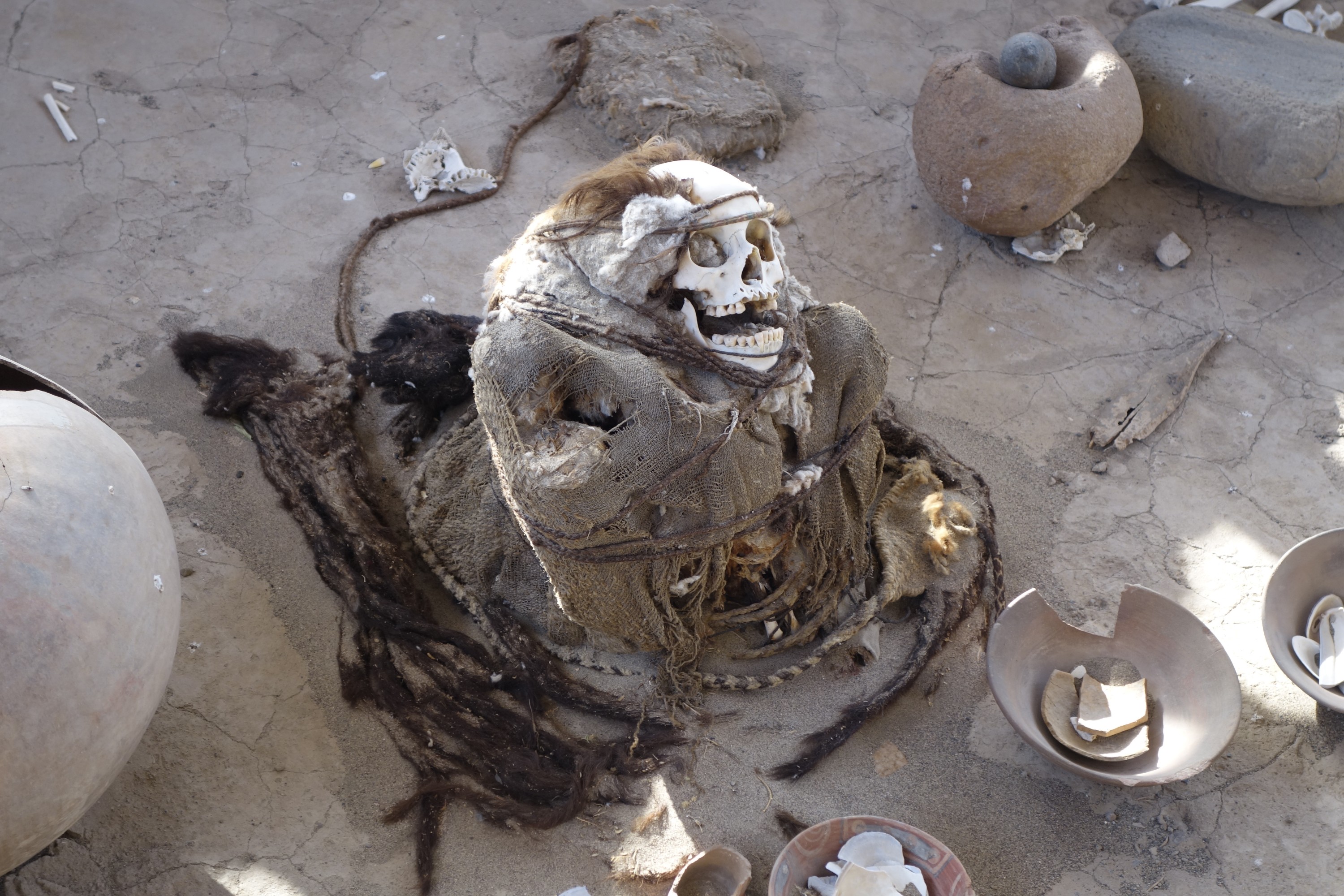 In the afternoon we visit Chauchilla Cementary of a prehispanic culture, beginning from 200 AD. All the graves in the desert were extensively plundered during the war between peru and chile or even before in civil war with shining path. Now it is protected by law and tourists have to pay 7 USD to visit and pay the restauration. The bodies here are in very good shape due to the dry climate. Indiana Jones and the Kingdom of the Crystal Skull was filmed here.
