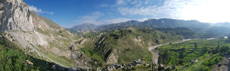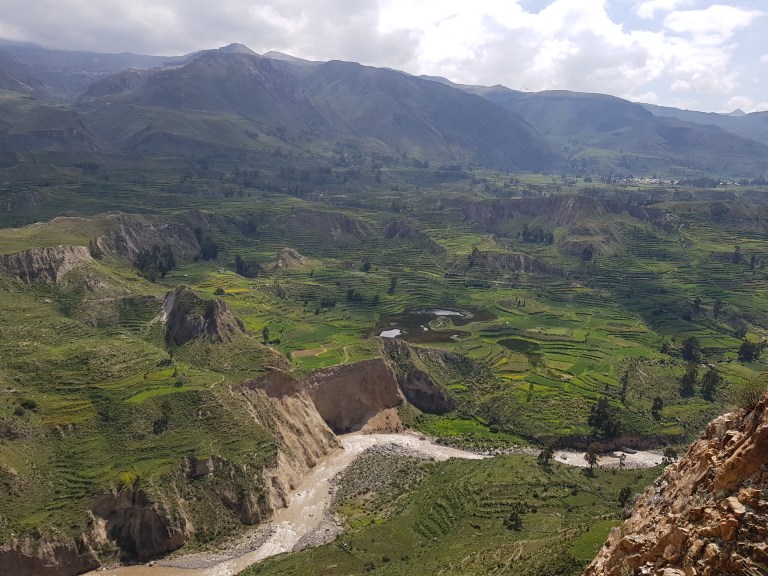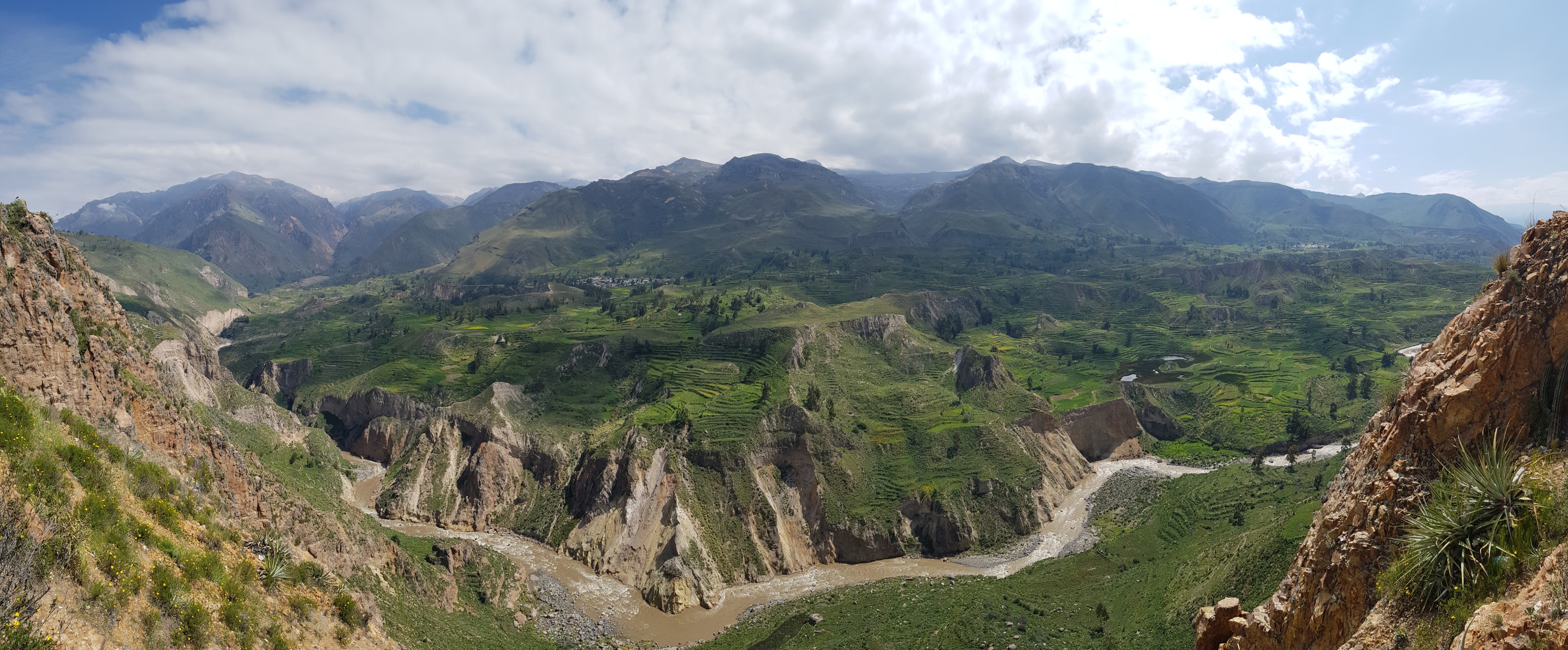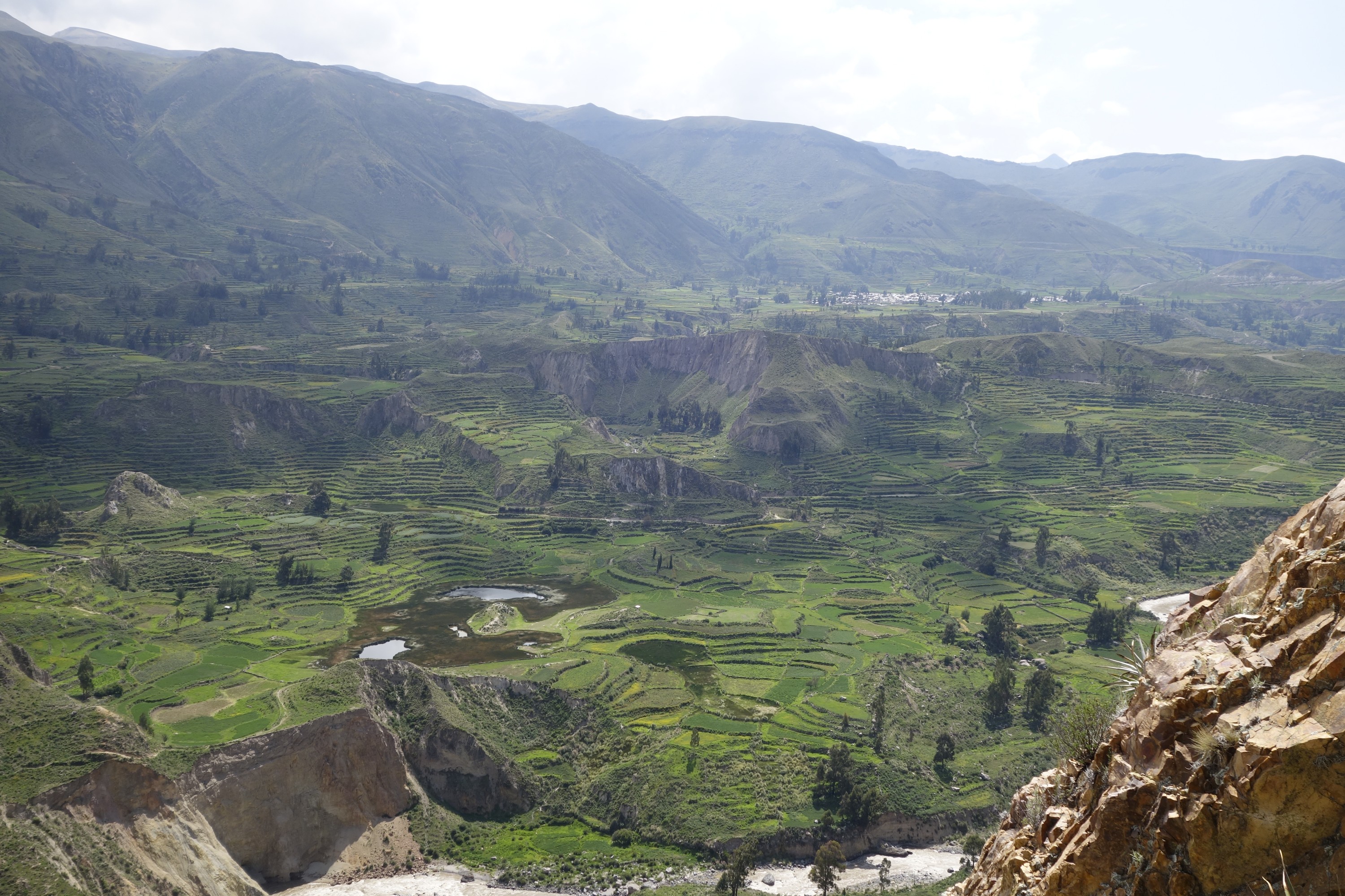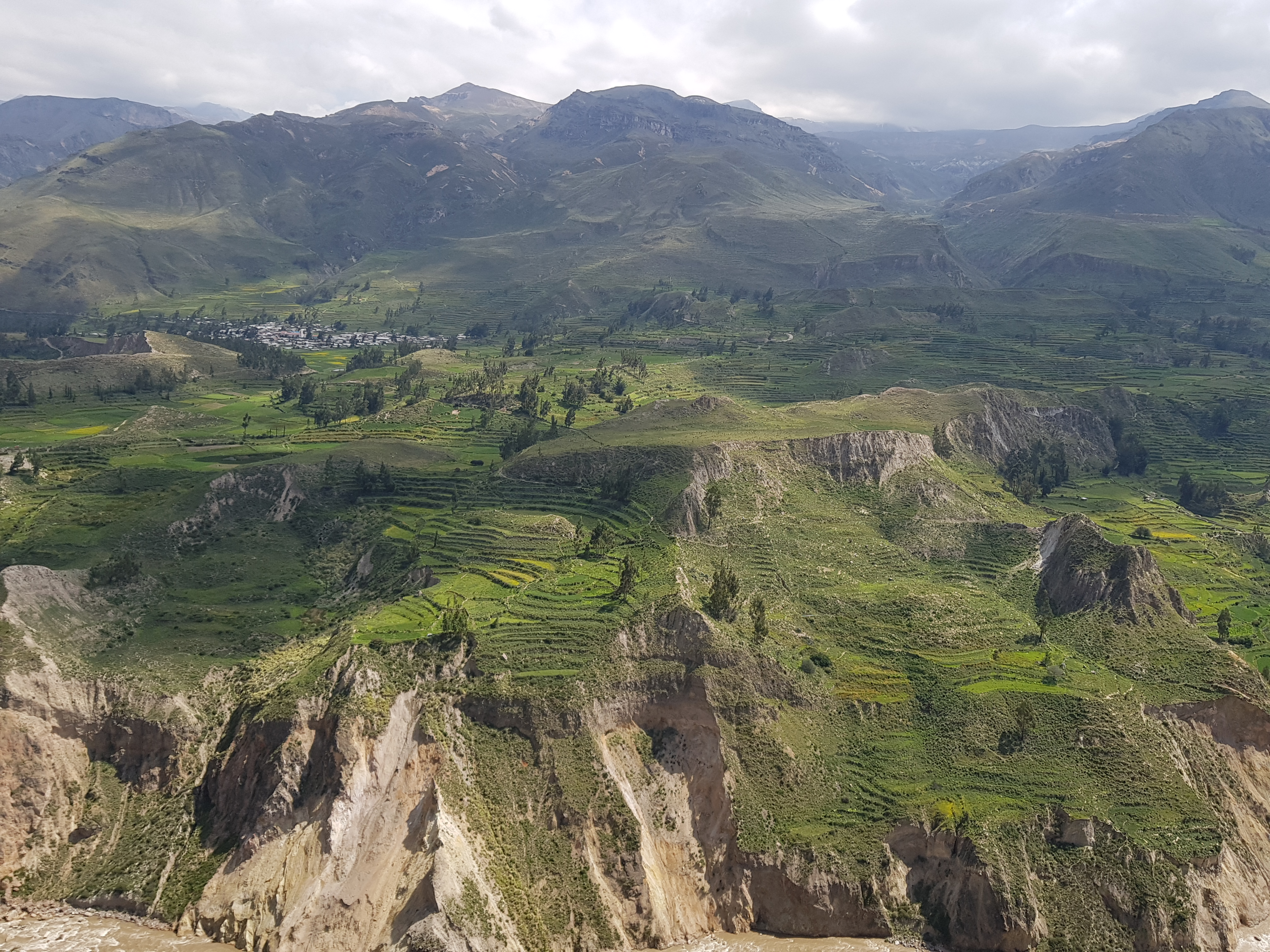 Then we get picked up by our mini bus and start to go up to Colca Canyon. We follow the river in a valley, where every squaremeter is terraced and used for agriculture. We drive directly up to Mirador Cruz del Condor as the guide tells us, later there will be bus-loads full of tourists.