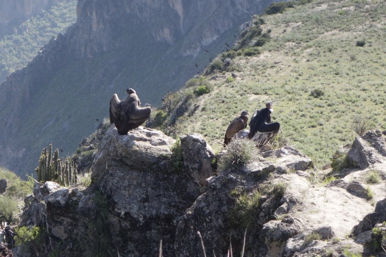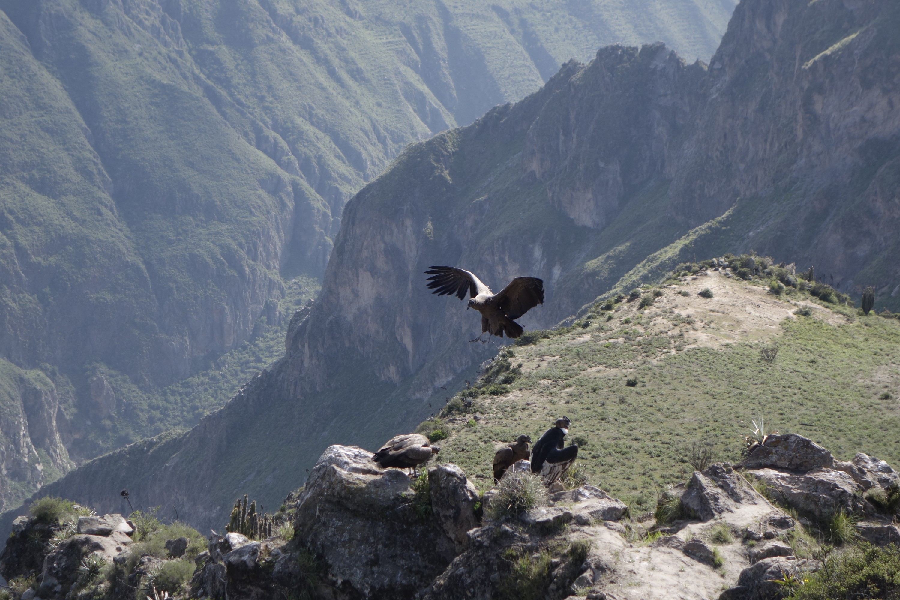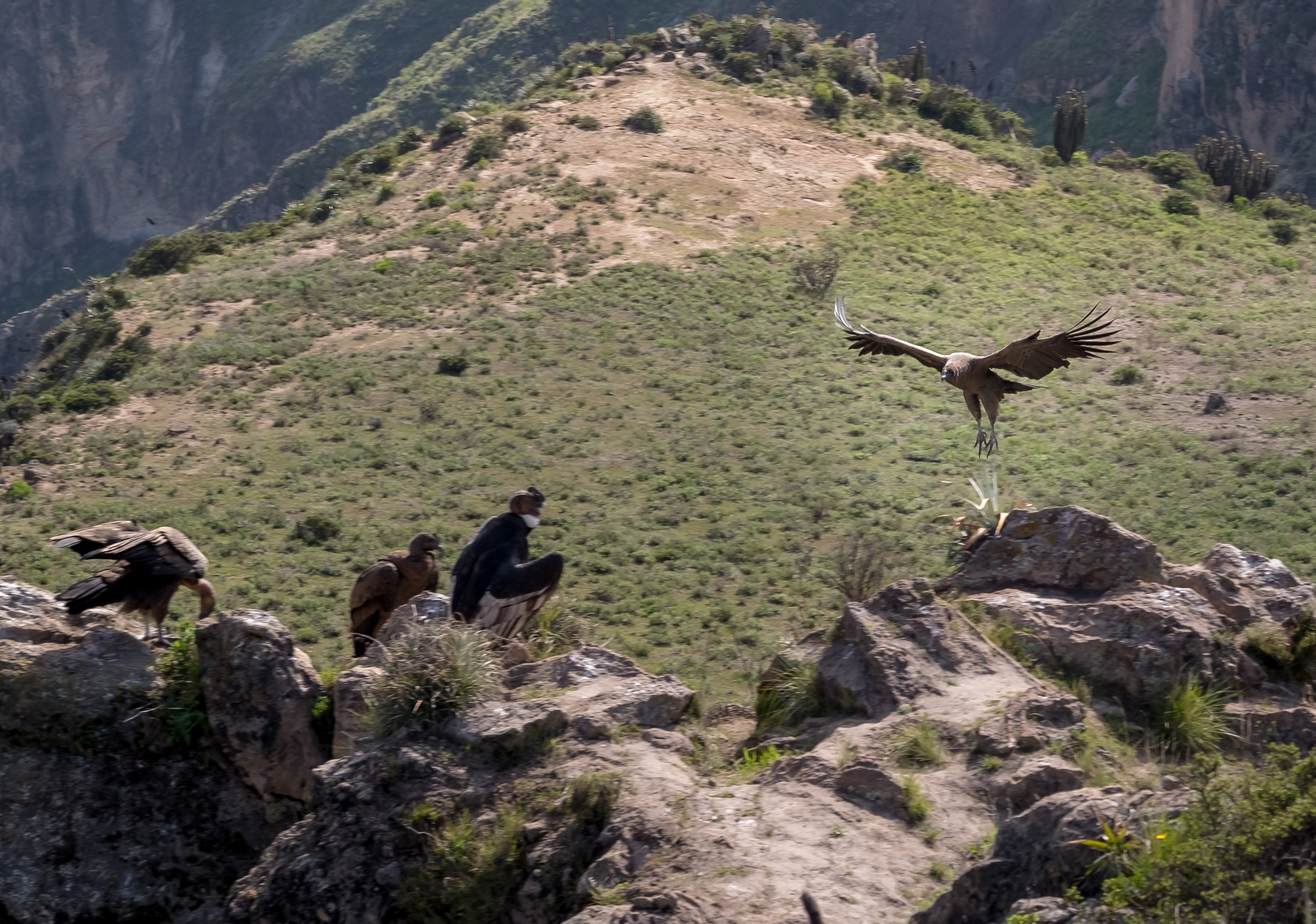 They pay the farmers to leave death cows in the valley to keep the Condors at the viewpoint. So they come everyday after the night to warm up and eat. As the tourist hords arrive, we leave …