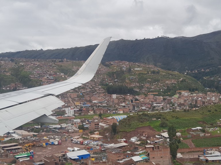 Flight into Cusco is super nice. You fly into the valley right over their heads and see the planted terraces on the green hill slopes ….