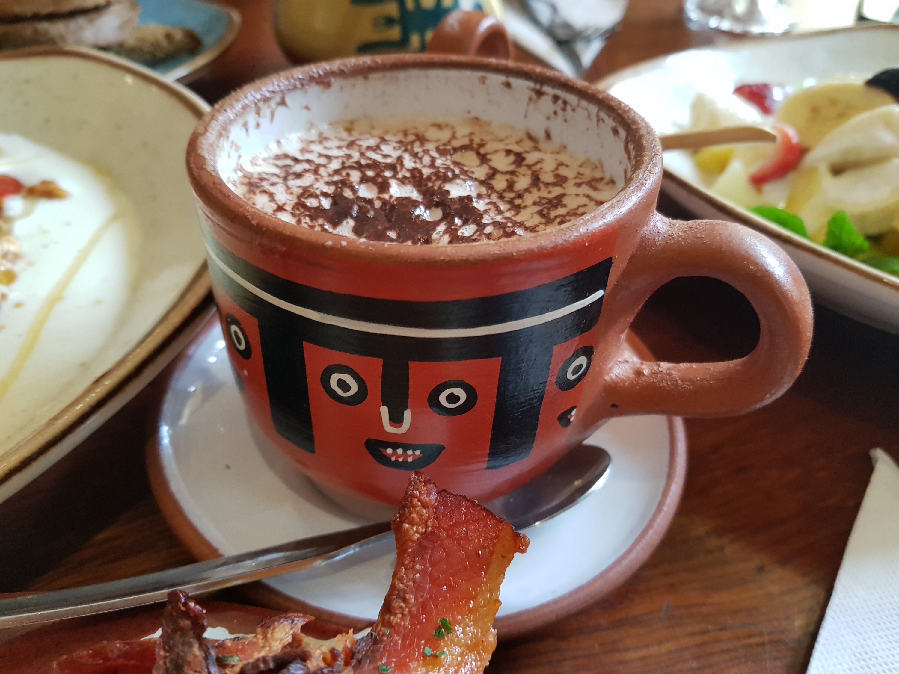 We leave without breakfast to the airport. There we checkin and take a coffee – no spoon, if you want to stir you get a straw, no milk – consumation offers are very limited.