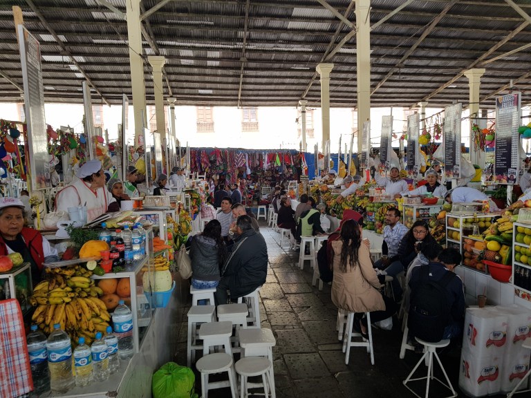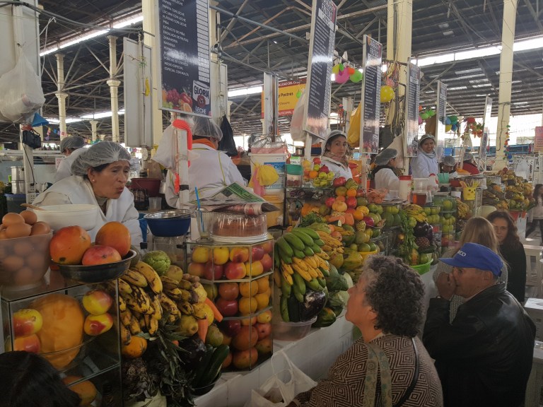 We go to the Mercado Central San Pedro di Cusco, a market hall built by Gustave Eiffel.