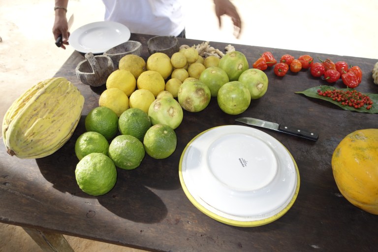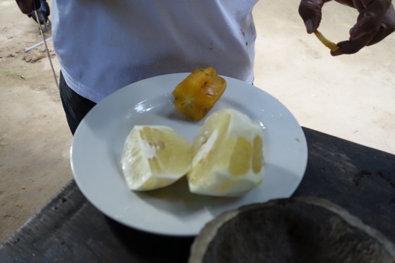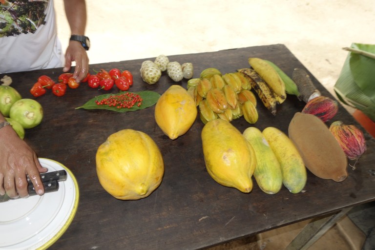 First Hugo shows and explains us the different fruits they grow, then we taste them.