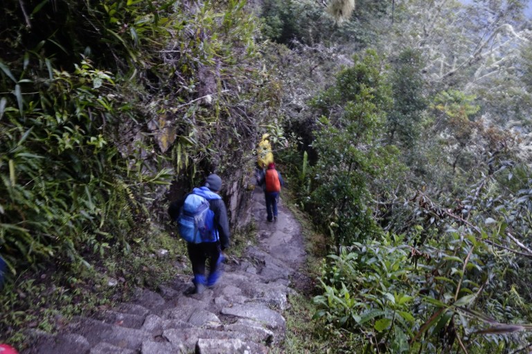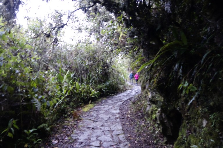 At 5:30 am the door is opened and the inca trail hikers can go in to the sun door. Rohody takes a gear up than the days before: “keep to the mountain side”