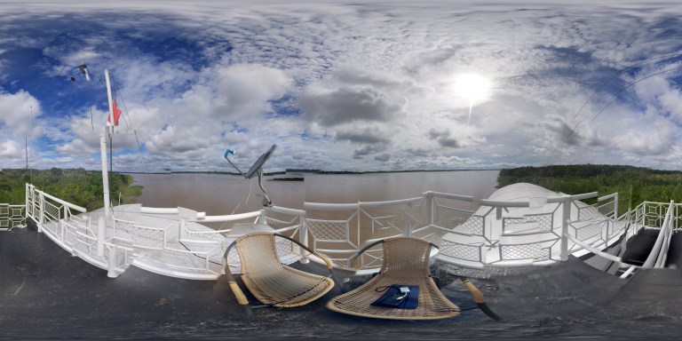 At 03:30 pm Victor gives us a geography lesson about the amazon, where we are and where we go in the library. A room on the top floor of the boat, which is closed and always about 15 ° C colder then outside. In the twilight the only place where we are safe from mosquitos.