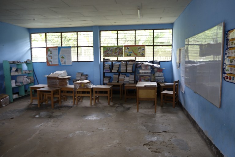 We pass by the school. First class is empty. In the second class only the (new) teacher is in. I have a seat on a chair. Suddenly a small girl comes in and sits beside me. We start and paint animals.