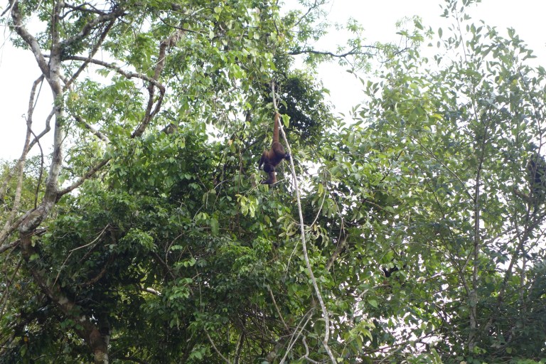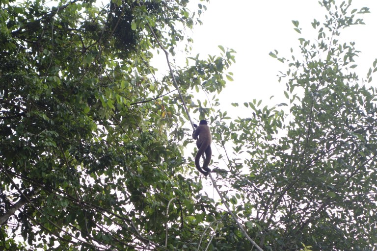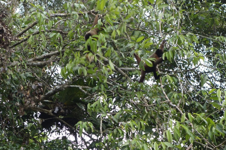 At 3:00 pm we board the skiff again to explore a river arm of Rio Ucayali. We find different species of monkeys playing in the trees.