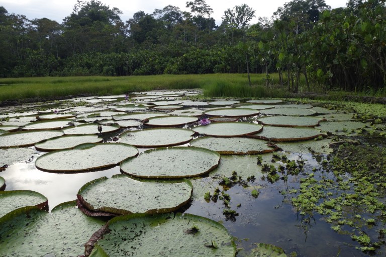 We go on land to find the gigantic Victoria Regia water lilies. There is a huge tree and then djungle and 1.000.000 mosquitos. I killed 1, 1 didnot bite me.