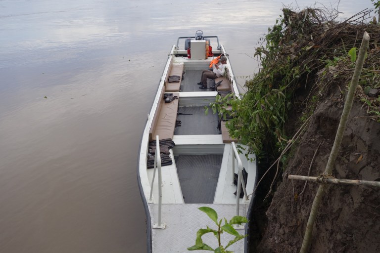 At 06:30 am we board the skiff. We travel to the river join Rio Ucayali and Rio Marañon and both get the Amazon.