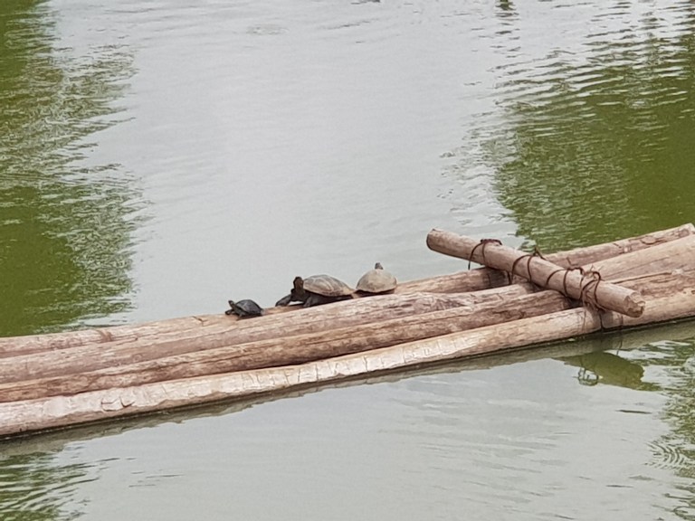 We hire some Tuk Tuks and cruise through the city to a pond with sone huge amazonian fish and turtles. The pond is used to teach the locals in not overhunting these fish.