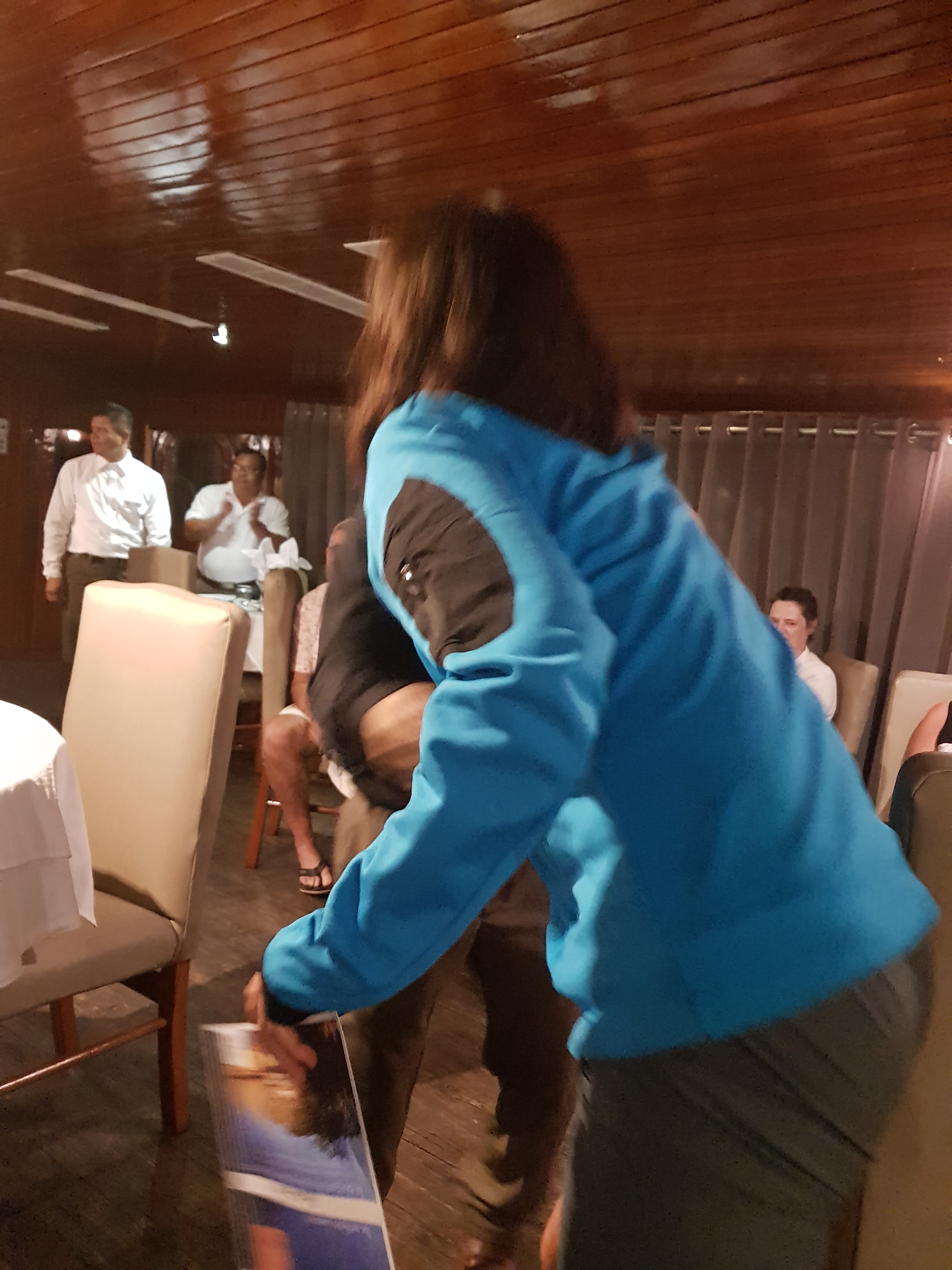 We leave for lunch back to the ship. Today they crafted a turtle out of my towel. I try to analyze but fail. I take the Qwirkle and we start playing three rounds.