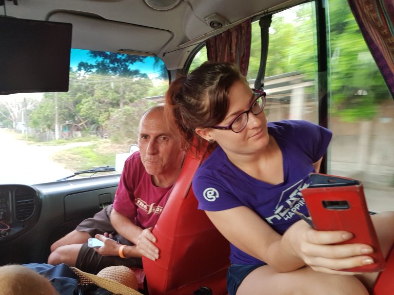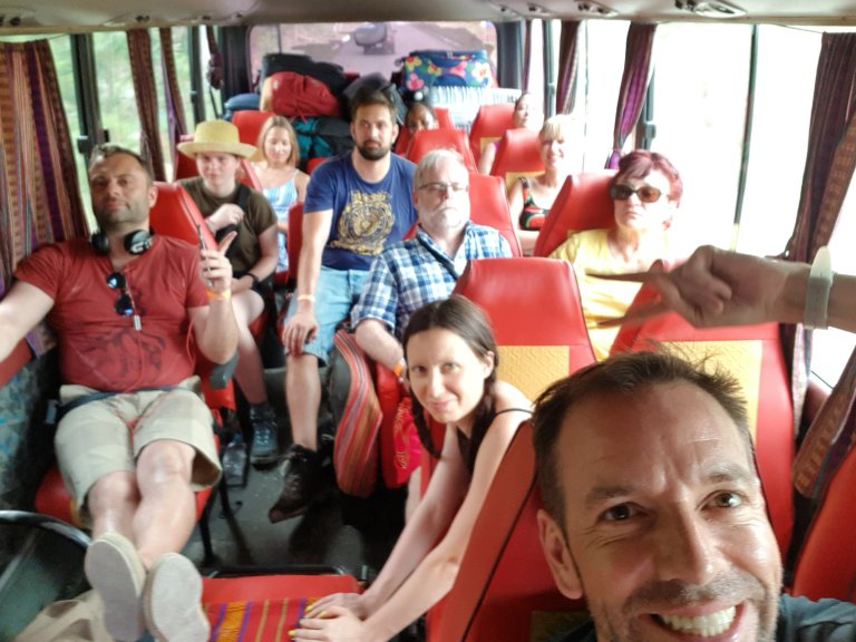 We start early in the morning at 6 am to the breakfast place, where we do a small stop for preordered sandwiches (breakfast). I get another one of this smoothies. It is the same breakfast place like yesterday. The coffee did not improve. Antonia, the German girl from our group killed her stomach. S from friesland had the same, but no effects … maybe it was half the liter of icecream. She stays at the breakfast place, Lola stays with her.
