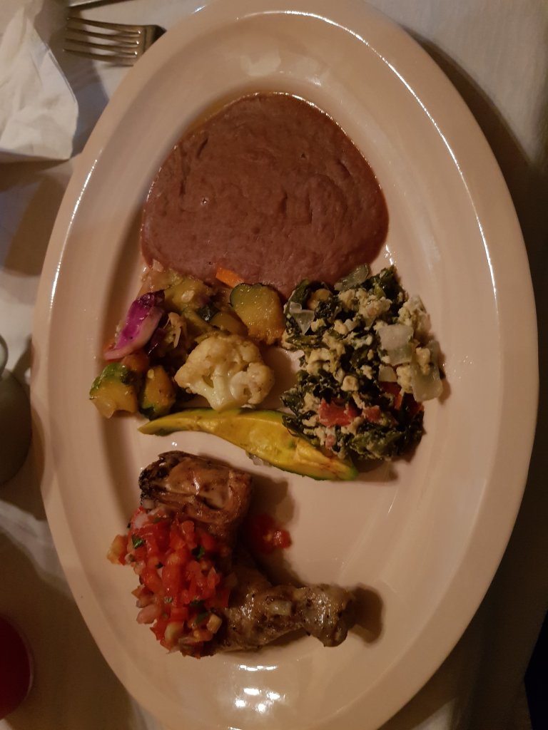 Then we get into the bus and drive back to the breakfast place and get lunch to go there. I have a salad with chicken, I never had so much green salad in Latin America before. Of course the dressing is either cilantro or super spicy. I take the cilantro.