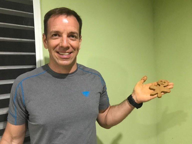 Afterwards we do some pottery. I do a gingerbread man. Since Kindergarten, they call me pottery Michelangelo.