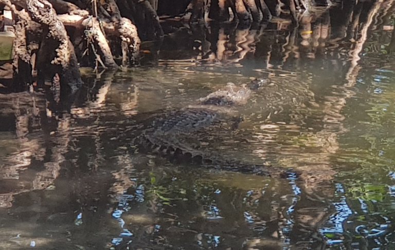 Then we walk to raggamaffin tours at the beach, check out fitting fins and masks/snorkels.The boat guide takes us to the other side of the island to show us a salt water crocodile – the respect of the locals is not the same as in Australia.