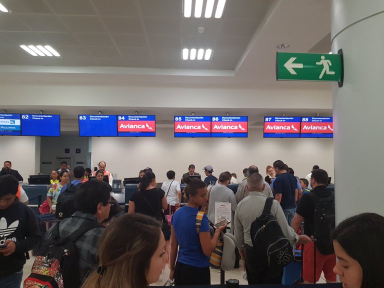 There we pay the driver, check in (somehow luggage in Latinamerica is always heavier than home, my 22 kgs mutated to 24.8 kgs). The clerk doesnot say a think, takes the exit cards and prints our pre-checked-in tickets. I got emergency exit seats for free.