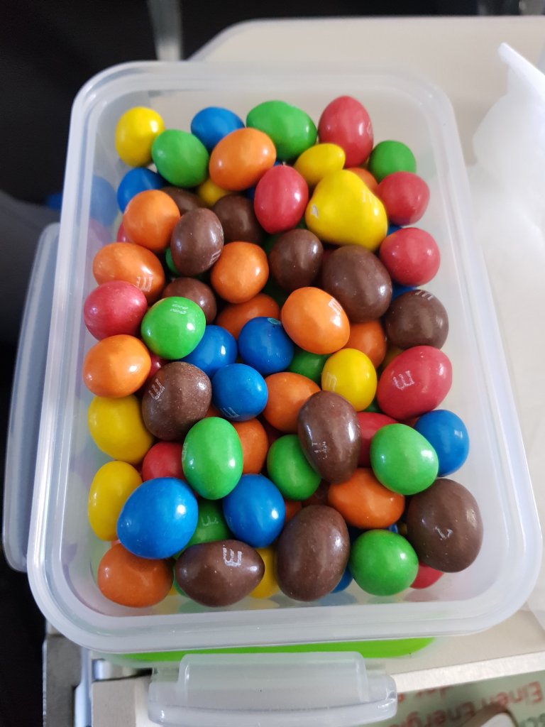 We get a magnet, write block, and leave too late. The connection flight in San Salvador is shifted half an hour forward, but the crew tell us they are the crew of the connecting flight, too, so no worries …