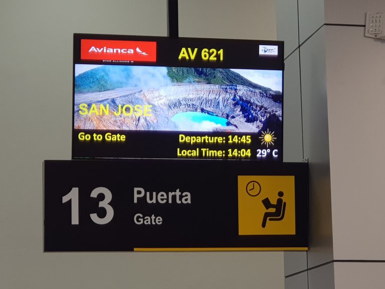 FLIGHT 5: Avianca AV621 San Salvador, El Salvador (SAL) 14:45– San Jose, Costa Rica (SJO) 16:05; 1h15; Airbus A320, full booked plane, star alliance bonus miles
