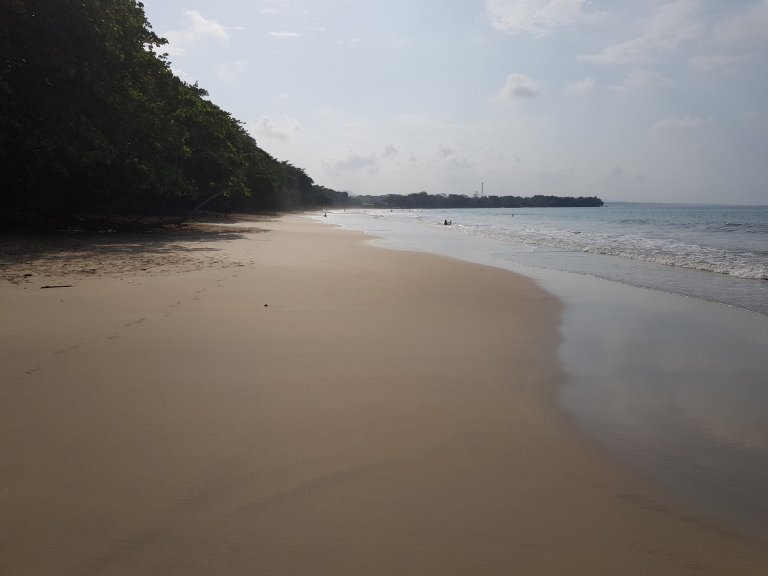 At 12:30 room is not ready, yet. The guy at the reception if samsati yoga and wellness retreat is super friendly and recommends us to go to Cahuita National Park. We just take swimming stuff, take a taxi there for 20 USD, go to the supermarket for ice cream and enter the park for a donation of 5 USD. We walk a bit, swim, walk, swim, then the ranger, who closes at 4 pm the park comes the hiking path along. So we turn around, swim once more, and leave.