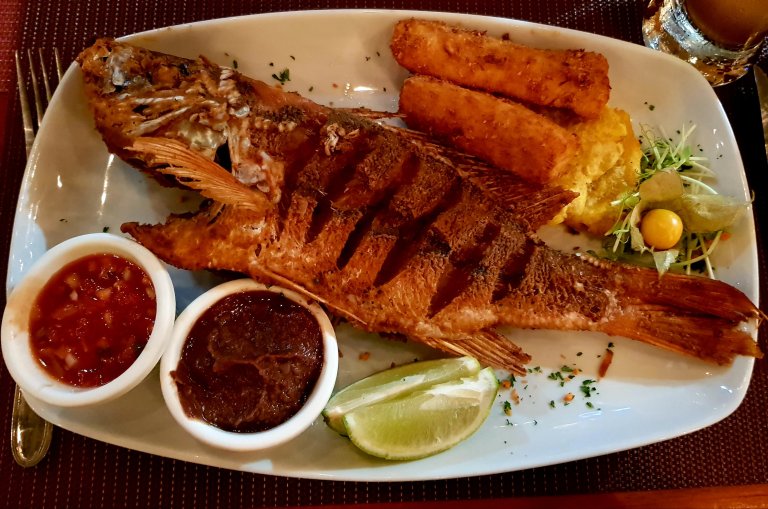 We agreed to meet at Snapper, Costa Rican seafood restaurant. Delicious. Lola is NOT hungry!