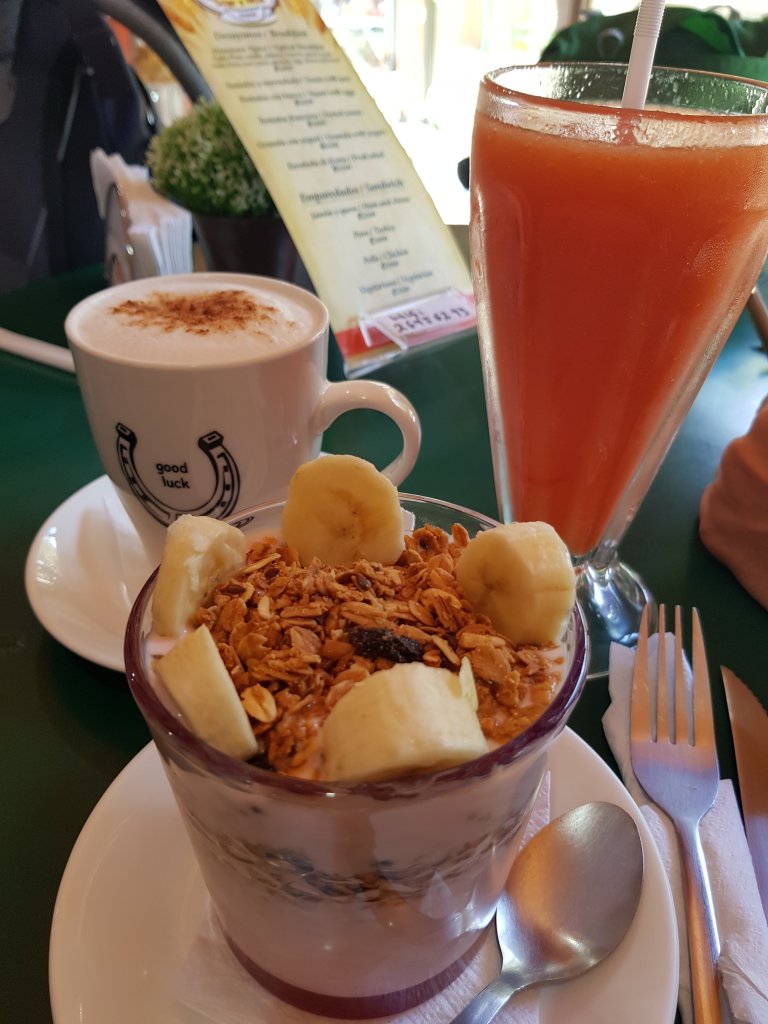 Breakfast there is good and cheap. Real coffee from a Jura, good Granola, sensational bakery. We sit until 10:00.
