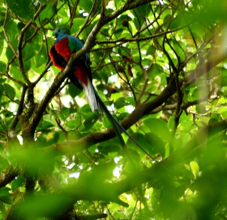 As we talk a lot about the Quetzal, he spots one. He is super happy as this is very seldom, he says.