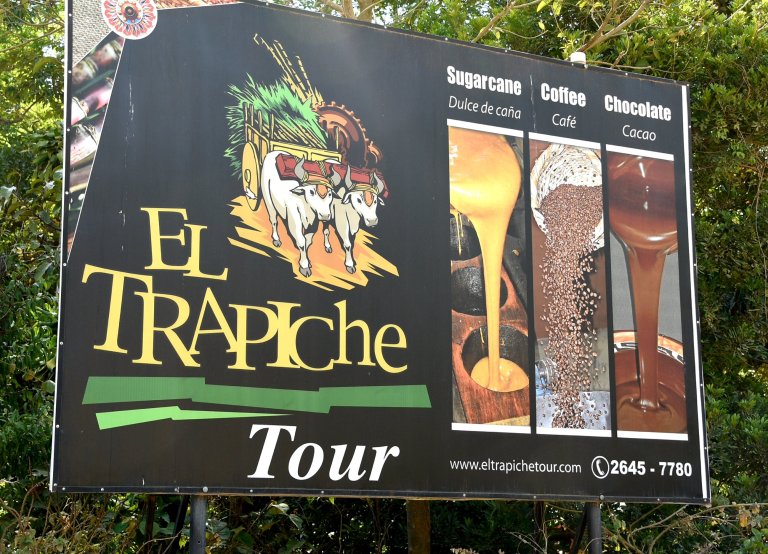 Then I sleep until we get picked up for the El Trapiche tour by a minibus. The tour is interesting, engaging, well organized, worth it. The guide, son of the owner, explains about sugar cane, coffee, cacao. Seeding, planting, harvesting, production. We do our own candies and taste different kinds of coffee with a extensive explanation about variants, quality, roast grade, creme and tasting competitions …