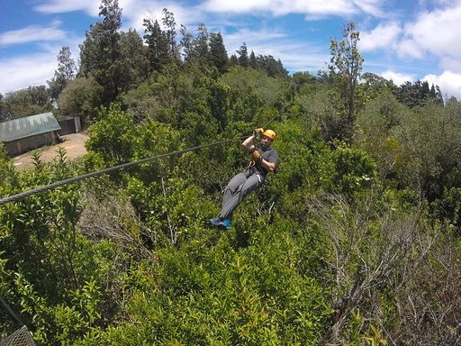 The first zip lines are like treetop in Austria. They get longer and longer. Some you can to as double team. The zip lines cross valleys in 800 meters long crossings. Some are 100 m above ground. More and more. More! Inbetween the Zip Lines I have to walk up to gain elevation. It is mostly easy walks, uphill, through a nice forest.