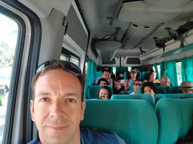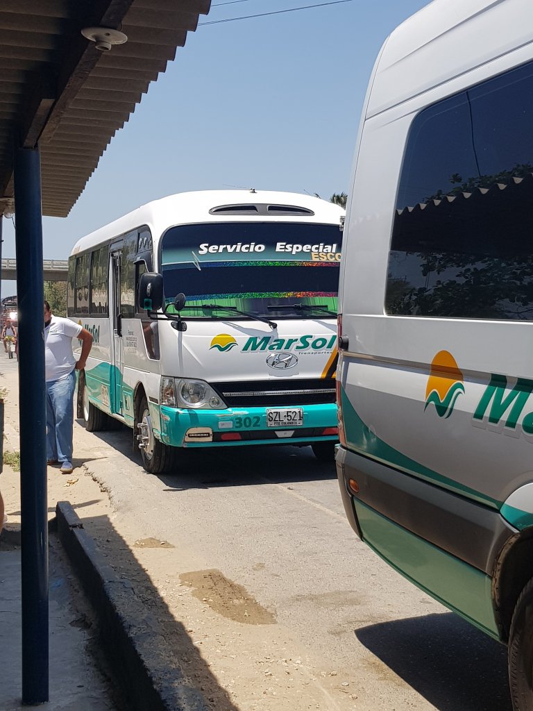A driver comes to pick us up. He drives to a Marsol interchange place. The bus gets full to the last seat. I seat in front, no negotiations about air condition settings. The driver is a penguin.