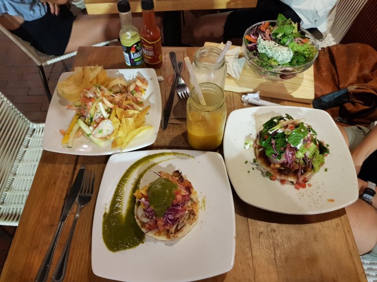 I shower, repack my things for the lost city treck and go for dinner to Lulo Cafe. I stop by the Carulla Bellavista Supermarket. I buy some Granola and some bread, cheese, keks for the venezuelan family in front of the supermarket. then i go.