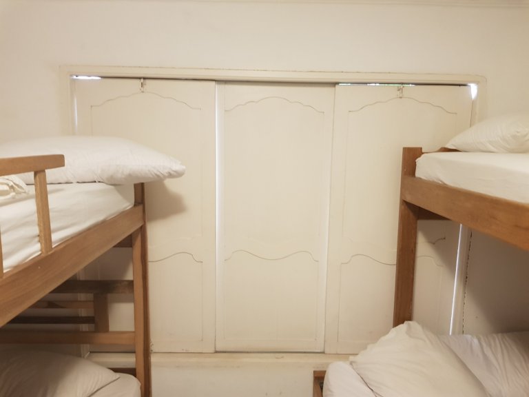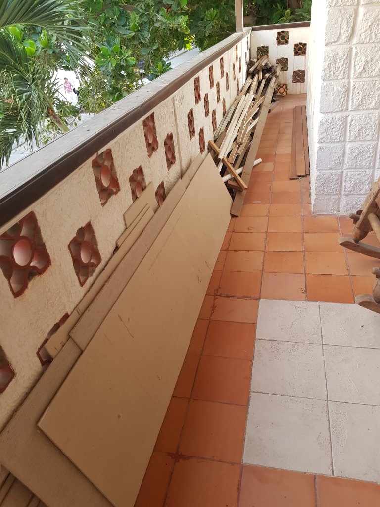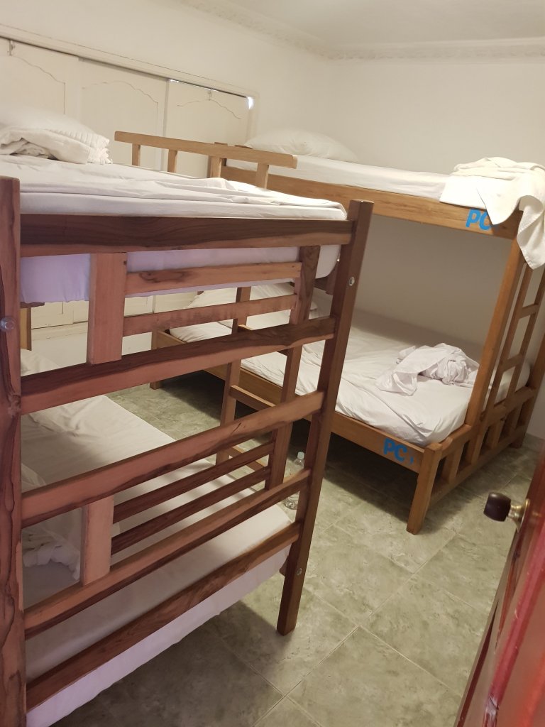 They repainted and took the sign off. I am the only guest. They have only one room with water. It is an appartment with a 4 bunkbed room. Cold water only. It stinks dramatically, but I can leave my big bag there, they do breakfast and cheap laundry. I leave them some stuff to send to laundry and go to town via the “beach”. Dirty, no human, only high houses, but like walled to the beach, no promenade to the yacht harbour. The city is not attractive, like Cartagena, too. Mostly rotten shops or food sellers, …