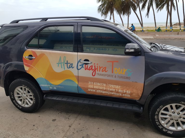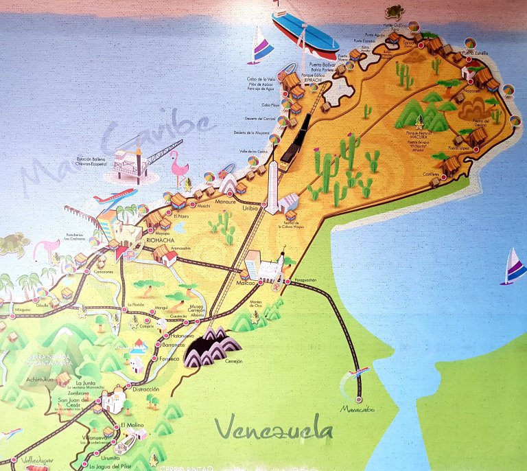 First we drive to the office of Alta Guajira Tours, where we meet the rest of the tour. 4 Colombian ladies from Bogota in the early 50ies on girls tour. One of them (Marcella) speaks a little bit english, the others (including our driver Jonathan) donot.