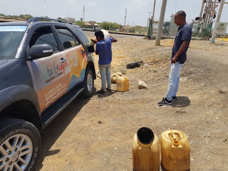 We buy water (there is no water further up north) and Venezuelan contraband fuel. No ethanol, with lead, good fuel, who cares about catalysers. Fuel station is very manual.
