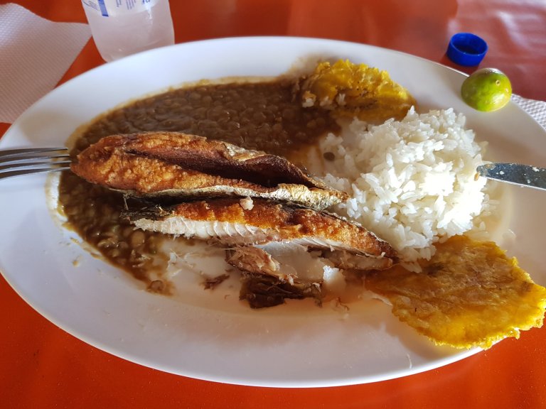We drive on to cabo de la vale to our sleeping place for the night and have lunch there. I ordered fish. They do only deep fried (they do everything only deep fried, except the rice). Bogota ladies are very friendly and helpful with choosing a dish. I always take, what Marcella is taking. And always all 4 – sin salad, no salad, they don’t trust, what isnot cooked or peeled).