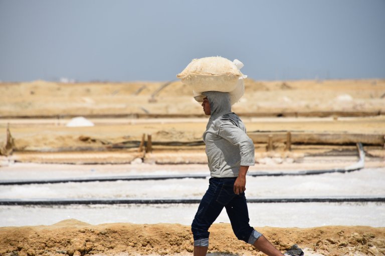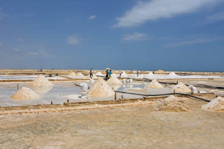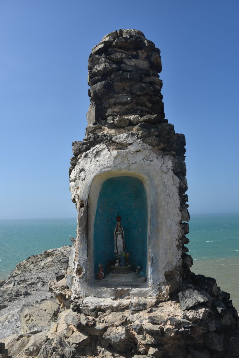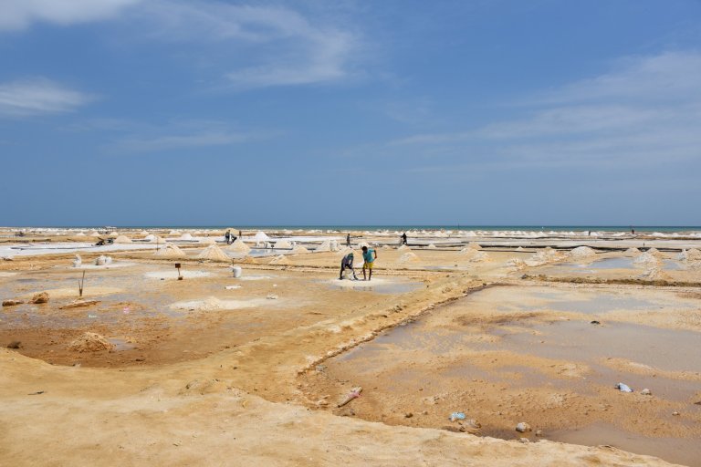 We arrive at the salt flats of Manaure. It is superhot. Idigenous Ladies do a tour for 2.000 pesos, Spanish only. There are certain families who work there. The men get paid 5.000 pesos per day (1.5 eur) for standing in the sun and super salty water. They di the salt raw from sea water and bring it to a factory, where it gets cleaned, refined, iodized and is sold. The evaporation need 40 days.