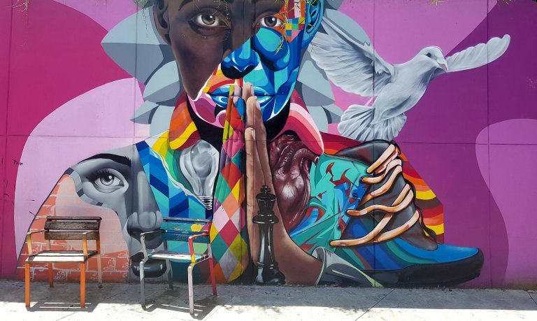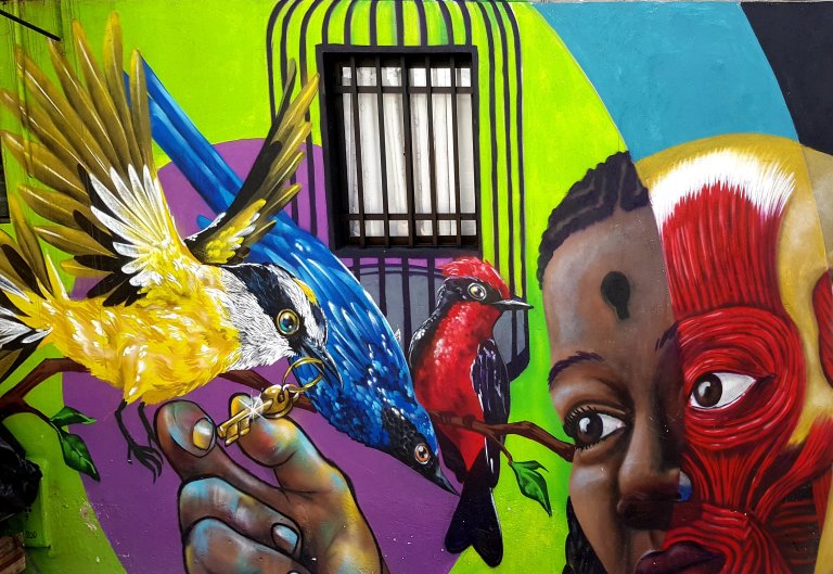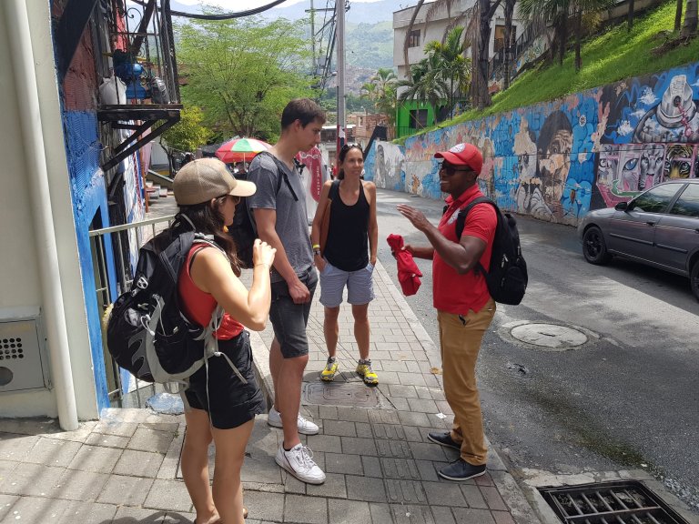 I booked a Medellin Free Grafitti Walking Tour Communa 13 via GuruWalk with Leandro, Red Shirt. Meeting point 13:30 hrs at San Javier Metro Station. I go with Uber.