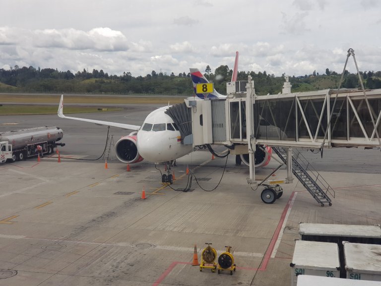 I check my luggage. Again 23 kgs exactly. Get a nice fridge magnet. Go through security. Super fast Wifi. I do a 1.5 GB update of my pad within 10 minutes for free. Then I get a coffee. Good coffee. Gate 8, 11:35, I board to Bogota.