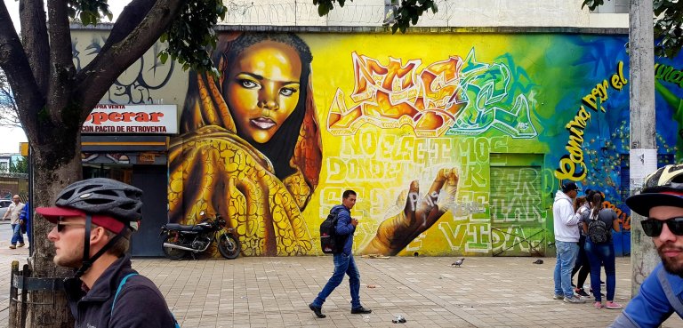 Explore Bogota by bike on a bicycle city tour. Make your way to the meeting point and begin your tour with a ride through the historical La Candelaria neighborhood of Bogota. You will pass several representative churches and squares and experience the different architectural styles of the old town. After visiting the enormous bullring, where toreros used to fight against furious bulls, explore some of the most beautiful parks of Bogota and taste a freshly made fruit juice in a typical Colombian fruit market before getting an insight of the rising graffiti scene of the city. After the tour, return to the meeting point, where this amazing adventure will come to an end.”