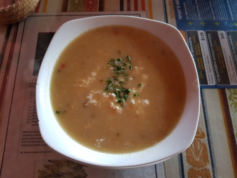 I get in the car, we drive to the interpretation center. I get Quinoa soup.