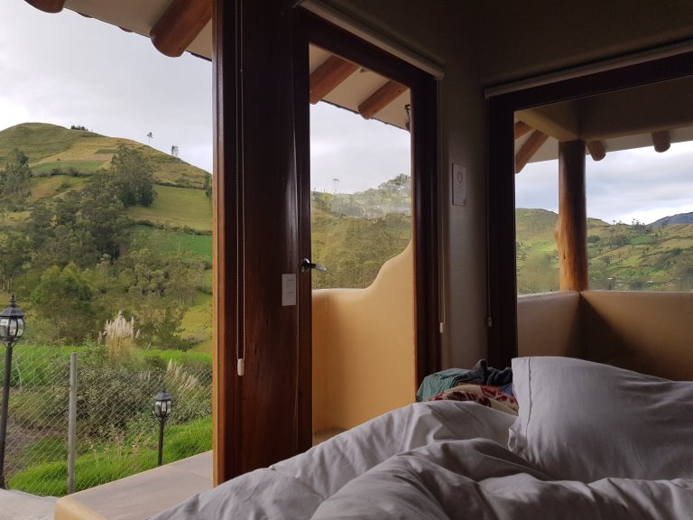 Weather is super blue, better than yesterday. Always lucky with the weather. The roads are good. Outside of Quito I have to switch car, because the vehicle needs an inspection. In my opinion it needs a mercy bullet, nothing more.