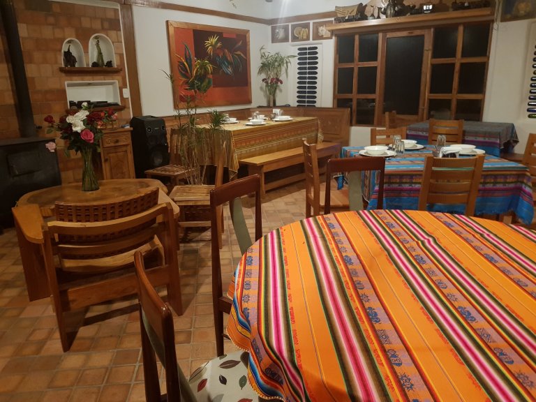 You will spend the night in hostel Mama Hilda. After you have checked-in you can go for a walk to explore the area. When you come back at night, you can smell the typical Ecuadorian dishes in the hostel. You will enjoy a nice dinner and afterwards you can take a cup of coffee or beer and sit in front of the fireplace and enjoy the company of others. It can be a cold night so remember to bring a sweater.”