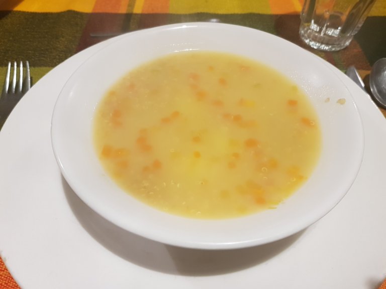 At least the water is hot in the shower. I go for dinner at mama hilda restaurant. The temperature is low, very low. At least the Quinoa soup is hot and a lot.