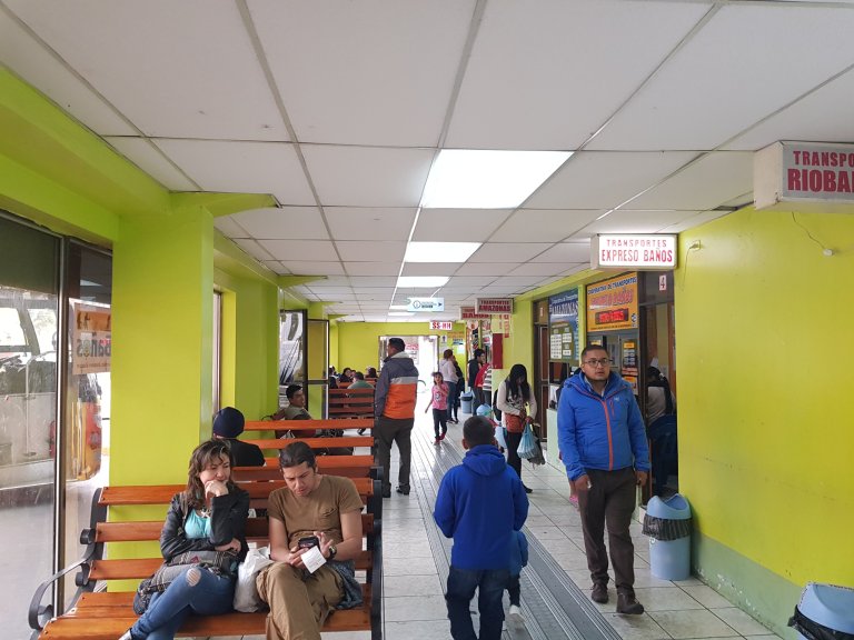 Then I wait for my driver. Of course he waits in front of the other hotel with the name of mine. I call. He comes and brings me to bus central Baños. There he buys my ticket to Riobamba (2 USD) and puts me on the bus.